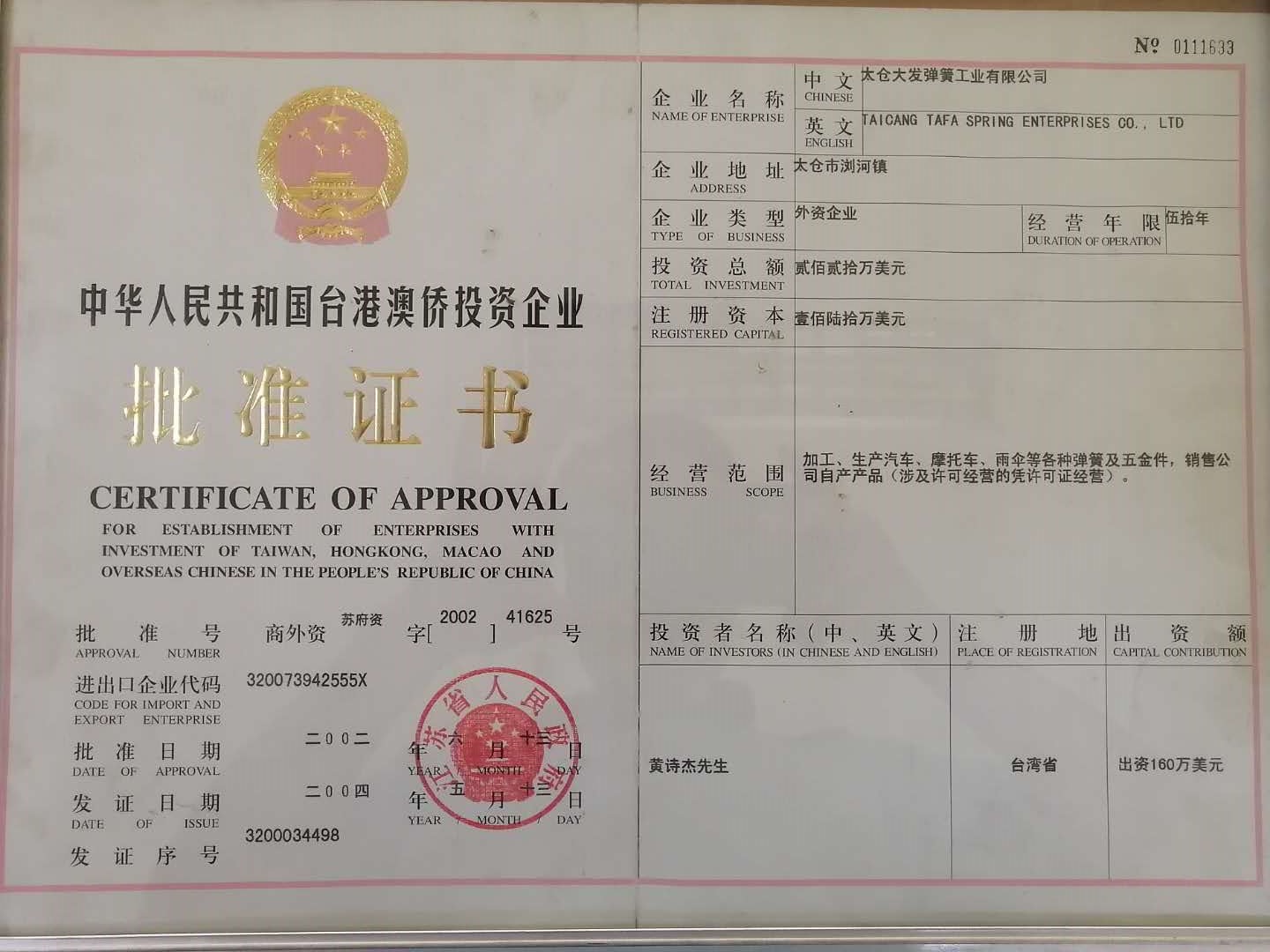 太倉大發(fā)彈簧工業(yè)有限公司由黃金樹先生于1967年始創(chuàng)于臺灣,是一個(gè)集雨傘、電子、五金機(jī)械、自行車、摩托車、汽車等的彈簧配件生產(chǎn)、加工、輔助設(shè)計(jì)服務(wù)的綜合性企業(yè),其中1990年創(chuàng)辦的廈門大發(fā)彈簧公司、2000年創(chuàng)辦的深圳大發(fā)彈簧公司、2002年創(chuàng)辦的太倉大發(fā)彈簧公司均位于經(jīng)濟(jì)發(fā)展地區(qū),地理位置佳。我們憑借在彈簧制造業(yè)的多年豐富知識與技術(shù),并著眼于以客戶為導(dǎo)向,秉持“以人為本,以質(zhì)為先,以客為主,持續(xù)創(chuàng)新”的經(jīng)營理念,強(qiáng)化競爭優(yōu)勢。公司導(dǎo)入ISO9001: 2000質(zhì)量管理體系,執(zhí)行ISO14000:2000管理方式,倡導(dǎo)安全、高質(zhì)量、高素質(zhì)的生產(chǎn)。